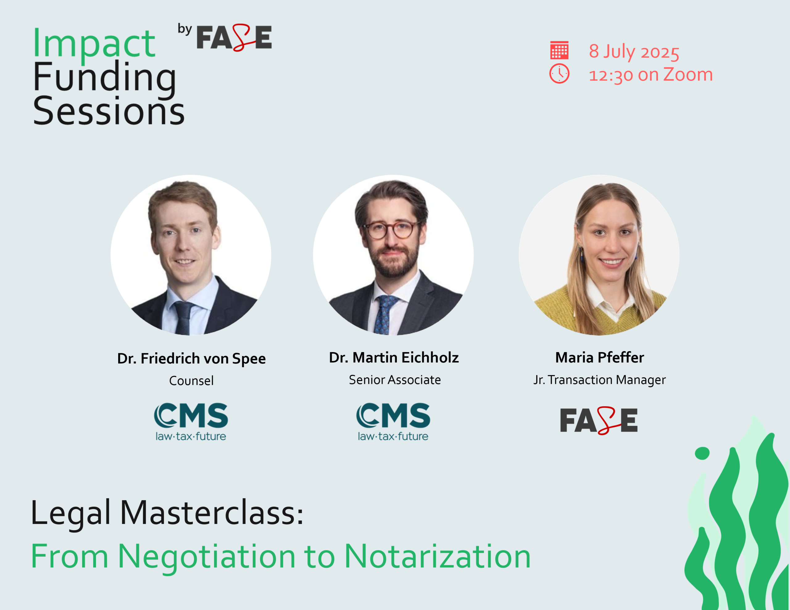 In our upcoming Impact Funding Session we are partnering with the international law firm CMS we shine light into the legal aspects of fundraising – from understanding relevant key clauses to building best-practice negotiation strategies. Together with our experts Dr. Friedrich von Spee (Counsel at CMS) and Dr. Martin Eichholz (Senior Associate at CMS), we unpack key clauses, common red flags, and negotiation strategies in term sheets, shareholder agreements, and investment contracts. This session is a practical guide to legal best practices for early-stage funding rounds.